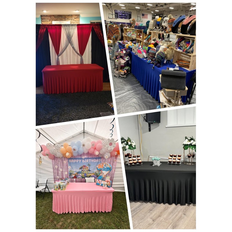 - Spandex stretchable cover cloth use for Christmas, Easter, Halloween, Thanksgiving, Wedding, parties, celebrations or any special event.Our table cloth can be used on the dessert table, display table, buffet table, DJ table etc.