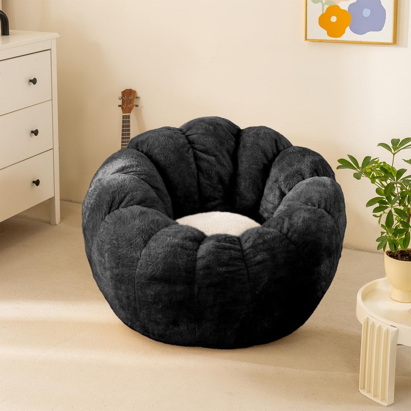 IEVENW Pumpkin Bean Bag Sofa Chair, Bean Bag Chair with Filler for Teens, Kids, Toddler, Comfy and Lazy Sofa for Dorm, Apartment, Living Room and Bedroom, Black