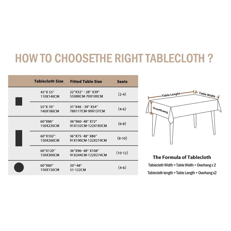 - Fits Any Occasion - For any occasion at home, party, hotel, restaurant, cafe, kitchen, patio or dining room. You can find the right tablecloth to match with any tableware, dinnerware, napkins, placemats and other decorations. Durable enough for both indoor & outdoor use.