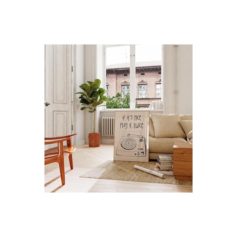 - Trendy Wall Art: Retro-style print featuring a turntable and record, perfect for music lovers.
