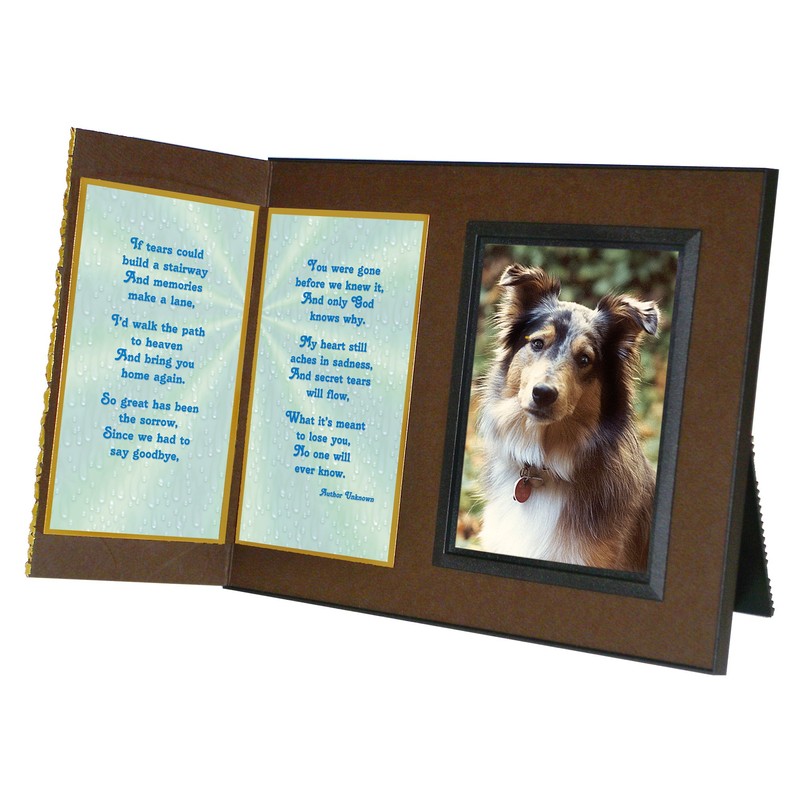 "If Tears Could Build a Stairway" Pet Loss Sympathy Picture Frame Gift and Memorial , with optional custom photo editing, Rich Dark Brown with Foil Accent