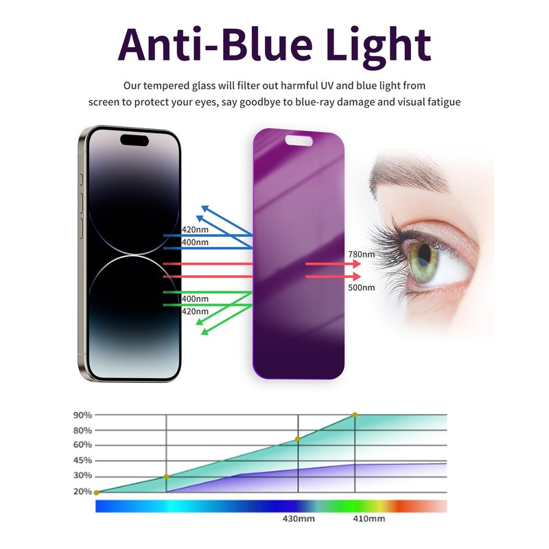 - Anti Blue Light Protection: The protective privacy glass is combined with EVA multi-coating technology and filter technology, it can filter out 95% blue light effectively, but still allows non-harmful light through the screen, prevent sleep disorders and eye strain.