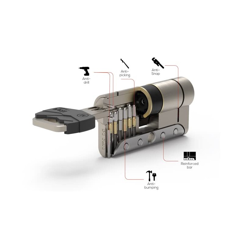 IFAM Iridium Series Cylinder 30 x 30 mm Cam 15 mm Bombin Doors 5 Keys Double Break Protection Drill and Anti-Busin System Double Anti-Bump System European Profile Lock