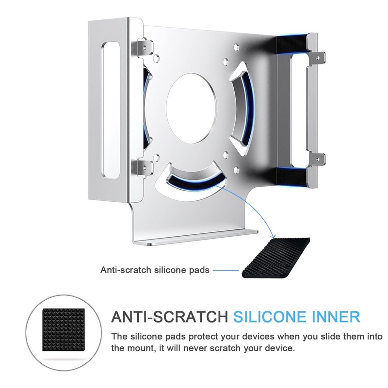 - SAVE SPACE ON DESK: This is a sturdy mount, that will easily hold the your device either on a wall, under a desk or back of monitor, which freed up space on your desk, add to aesthetics of the whole space.