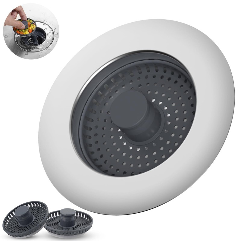 iFealClear 3-in-1 Kitchen Drain Stopper with 2 Basket,Upgraded Kitchen Plug Strainer, Stainless-wrap Shell Replacement for Food Waste Catcher, Suitable for Sinks Hole 70mm-86mm,Depth > 22mm