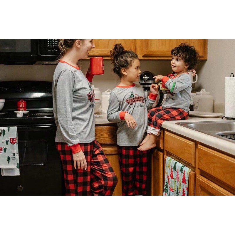 - Festive, Holiday-Inspired Design. This matching family pajama set features classic Christmas in long-sleeved stretch truck print tops and plaid pants, make these Pj's perfect for Christmas festivities.