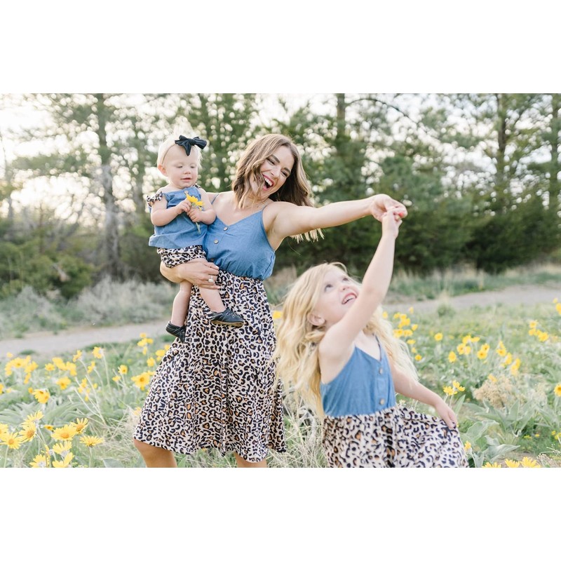 - Mommy and Me matching outfits sleeveless with fake button and flattering leopard printed skirt features add some pizzazz and give the dress personality.