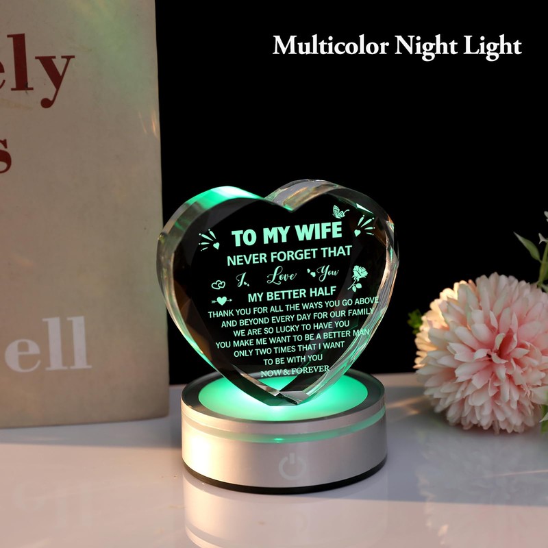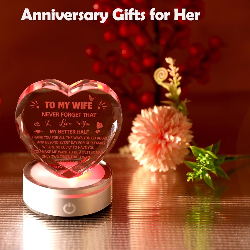 - Premium K9 Crystal Material: Made with high-quality K9 crystal and advanced laser engraving technology, this heart-shaped keepsake features charming light and loving words that expresses your love. A unique and meaningful gifts for wife.