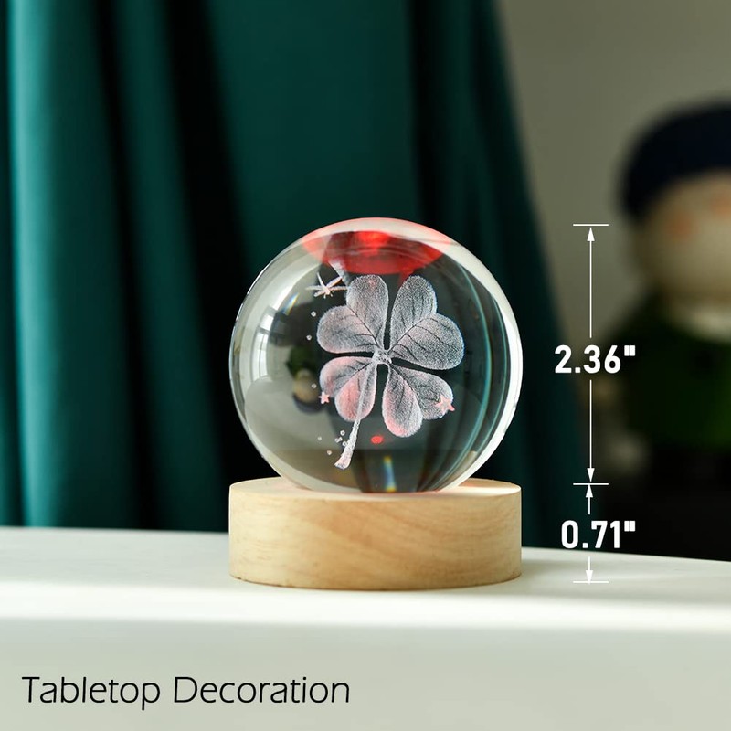 - 3D Four-leaf Clover Crystal Ball: Diameter of Crystal is 2.36", with Colorful Lighting Base