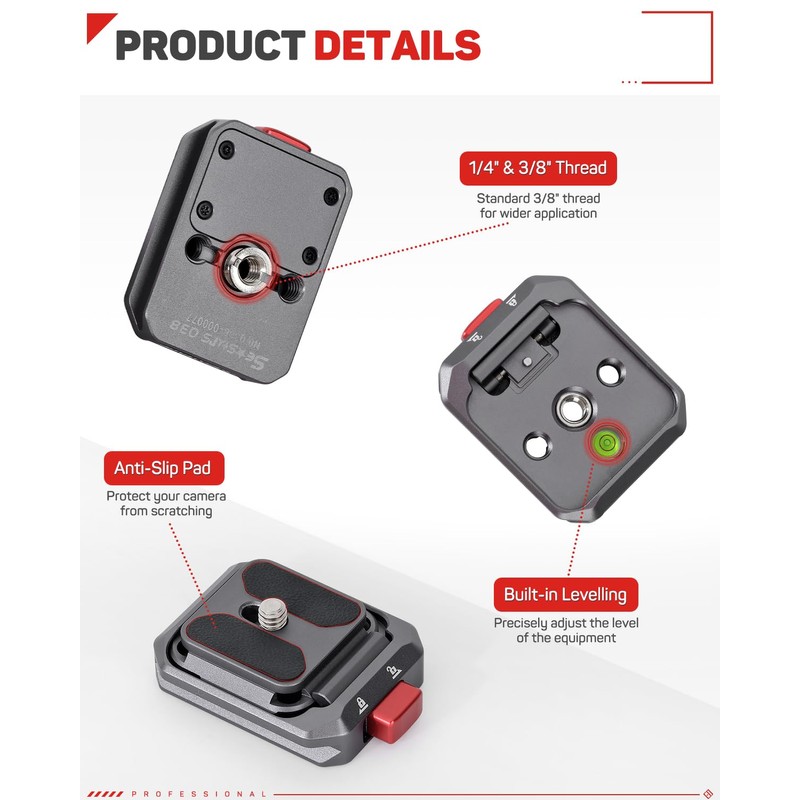• Compact Design - The small square quick release base measures only 1.5" x 1.5", making it portable and convenient for quick installation on various gears. Aluminum-made makes the quick release plate get more solid for daily using.