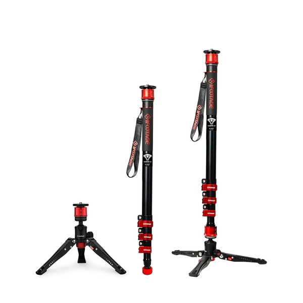 • ⭐【Lightweight Travel Monopod】: Portable monopod weights 2.5 lbs, collapsed length in 27 inch. Lengthened base feet is up to15cm in length, is more stable and is competent enough to work in different envirenment.