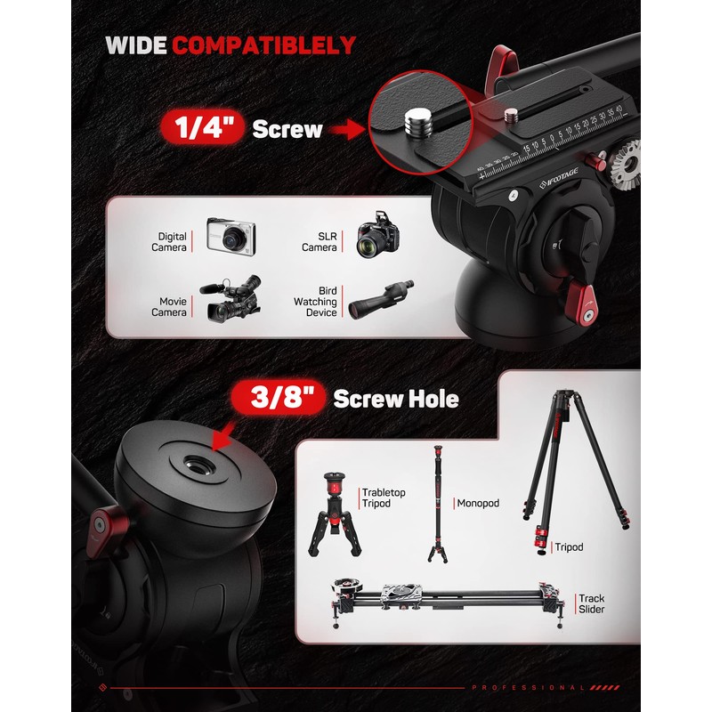 - Upgraded Quick Release Plate - Newly K5S fluid head plate have wider compatiblity with Manfrotto, Dji or other brands(not all). 1/4" mounting screw is also fit with most standard video equipments.