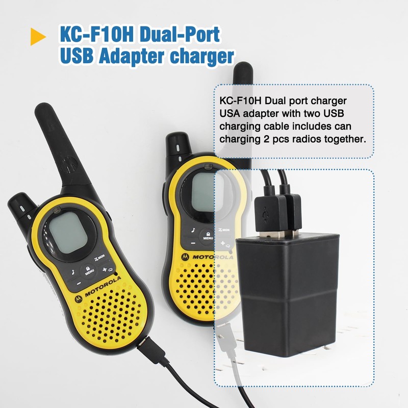 - ► IFREQTECH KC-F10H Dual port charger USA adapter with two USB charging cable includes can charging 2 pcs radios together.USB-A to Mini USB charger cable and easy to supply the radios in power with the USB charging way.
