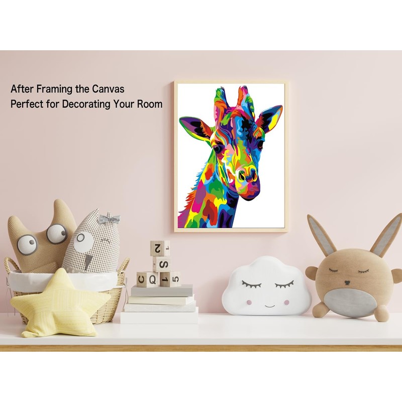 ifymei Paint by Numbers for Adults, Children, Beginners, DIY Gift Arts Kits with Brushes and Acrylic Pigment, 16x20 Inch Colorful Giraffe [Without Frame]