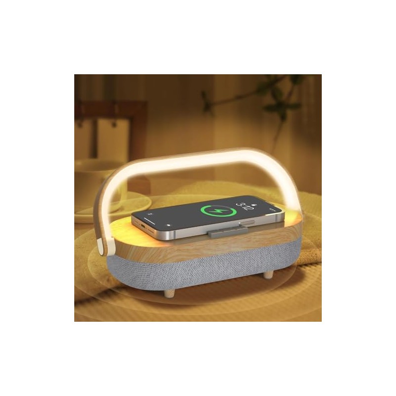 - 【Bluetooth Speaker with TWS Function】Smart music bedside lamp with wireless charger with Bluetooth 5.0, 33 feet max transmission distance. Pair two speakers for a stereo setup with TWS technology. The built-in 5000mAh battery is superbly long-lasting.