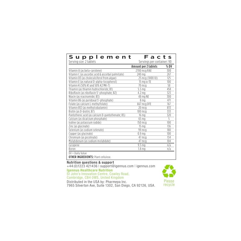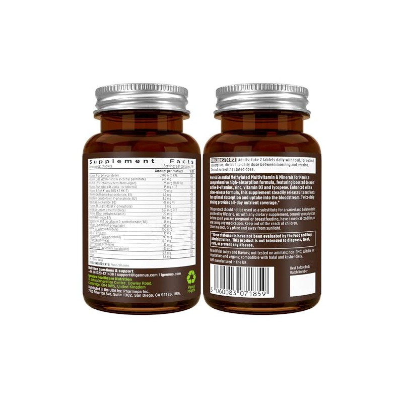Igennus Healthcare Nutrition Igennus Methylated Men's Multivitamin, MTHFR Supplement with Active B-Vitamins, 21 Highly Bioavailable Nutrients, Multivitamin for Sustained Release, Clean Label, Non-GMO & Halal 180 Tablets