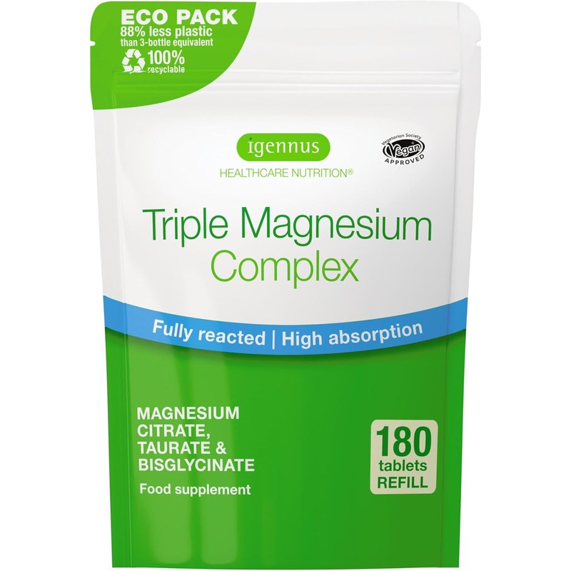Igennus Superior Triple Magnesium Complex, 90 Servings, 2000mg Glycinate, Citrate & Taurate, Clean Label & Chelated, 262mg Elemental Magnesium, Vegan, 180 Tablets for Women & Men