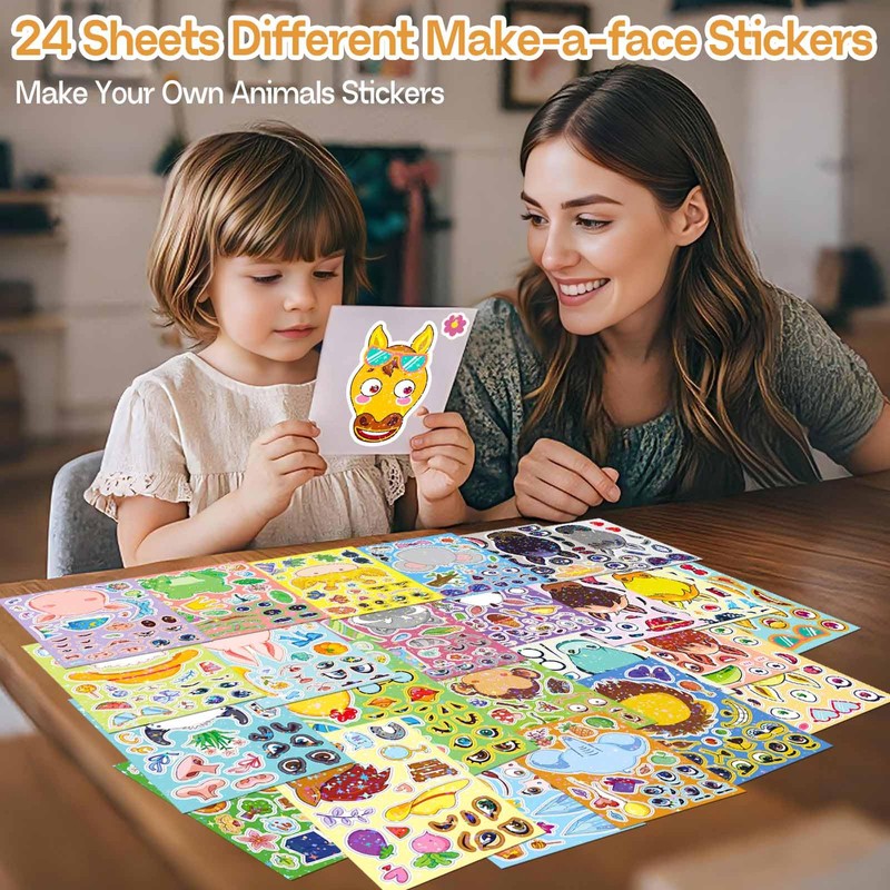 iGetooy 24 Sheets Make a face Stickers for Kids, Make Your Own Sticker Sheets with Animal Mix, Crafts Party Favors Goodie Bags Stuffers for Kids