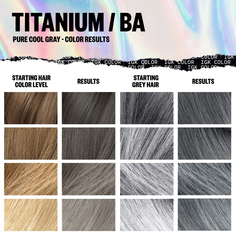 IGK Permanent Hair Color Kit | BA Titanium - Pure Cool Gray | 100% Gray Color...