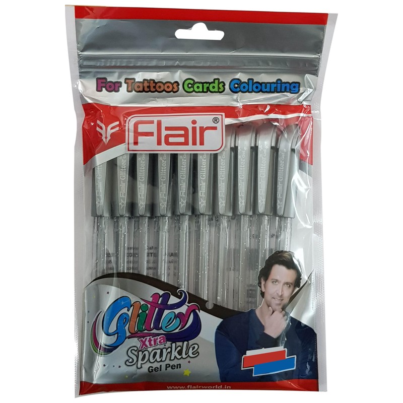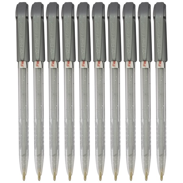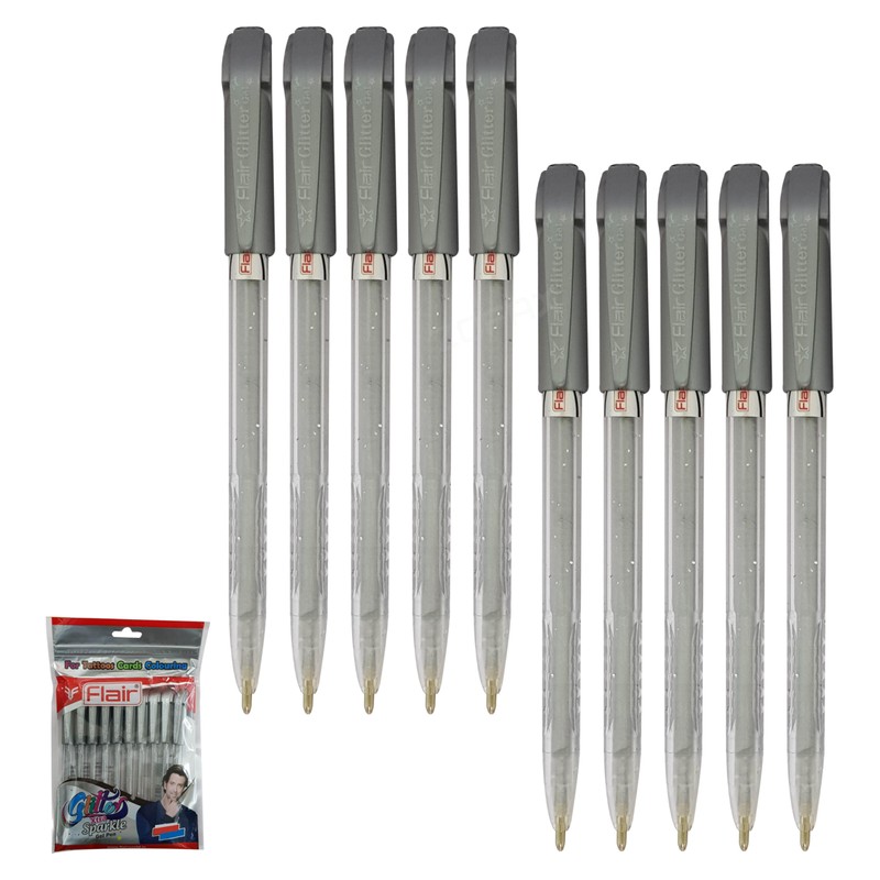iGlitter Xtra Sparkle Glitter Gel Pens, SILVER, Medium Point (1.0mm), Pack of 10, Trio Grip, Ideal for Write Colour Sketch, iZOFAX Black Ball Pen