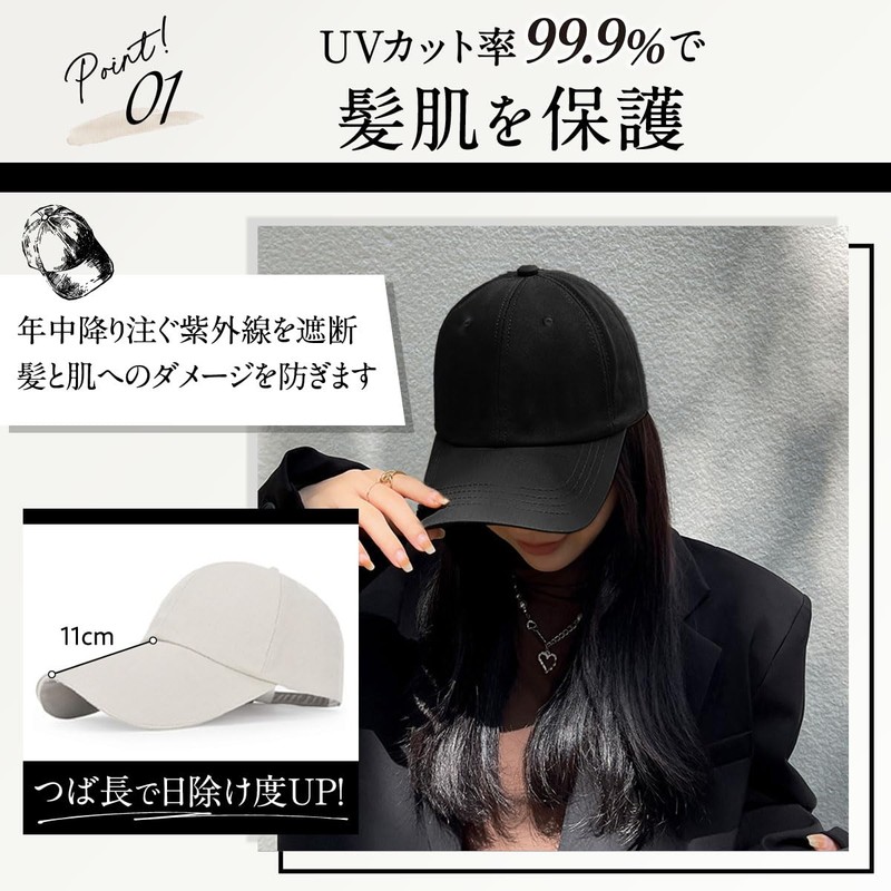 IGNITE LIFE Women's Cap, Simple Plain Cap, 40s, Deep, UV, Spring/Summer, Large Size, Light Blocking, Brim Length, navy