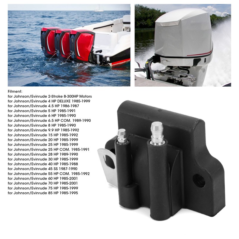 1、OEM numbers for reference: 582508, fit for Johnson/Evinrude 2‑Stroke 8‑300HP Motors. 2、Used to convert the low voltage current of the vehicle into high voltage. 3、Improve combustion efficiency and increase ignition energy intensity for easy start. 4、Simple to install, no complicated tools and operations required, save time and effort. 5、Original standard, reliable replacement for the old or damaged ignition coil.
