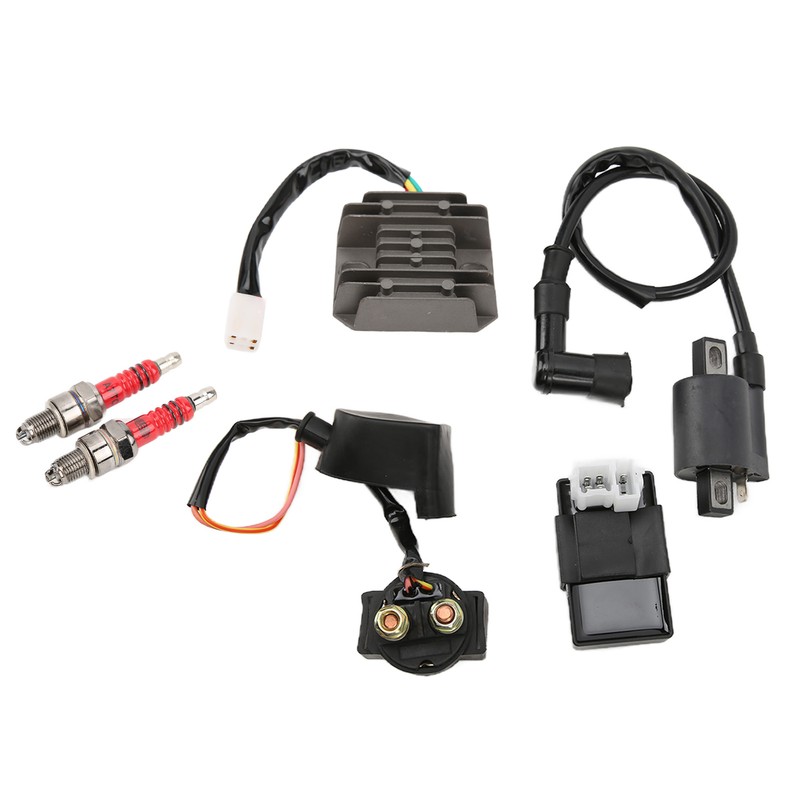 Specification: 1Set (includes 1xCDI, 2xD8 spark plugs, 1xelectromagnetic relay, 1xignition coil, 1xregulator)