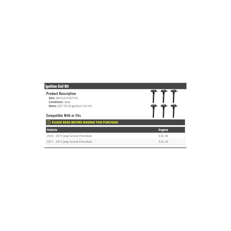 Ignition Coil Kit - 6-Piece - Compatible with 2011-2017 Jeep Grand Cherokee