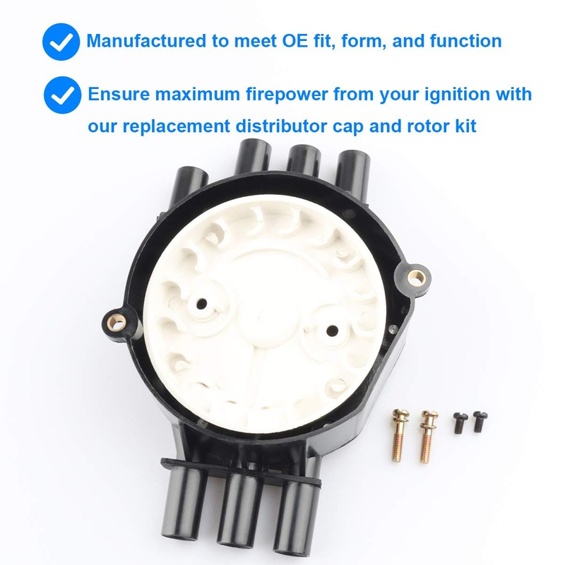 - OE FIT, FORM, FUNCTION : Professional, high quality OE style and meet or exceed all original equipment performance replacement ignition distributor cap and rotor kit. Constructed with premium materials for durability. Brand New and tested prior to leaving the factory. Note: Spark plug wires can be attached to the distributor cap. Be very careful when you are removing the cap so as not to detach these wires from the distributor cap.
