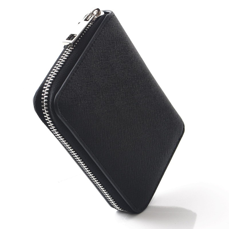 Ignition Original Saffiano Leather Zip Around Bifold Wallet Coin Purse, Black