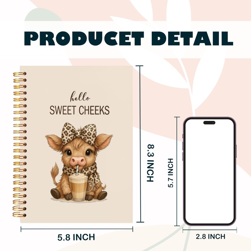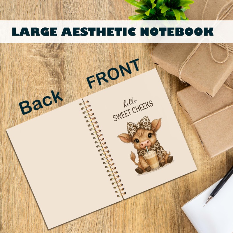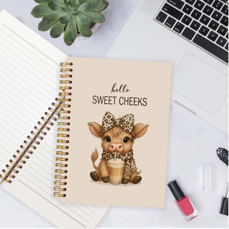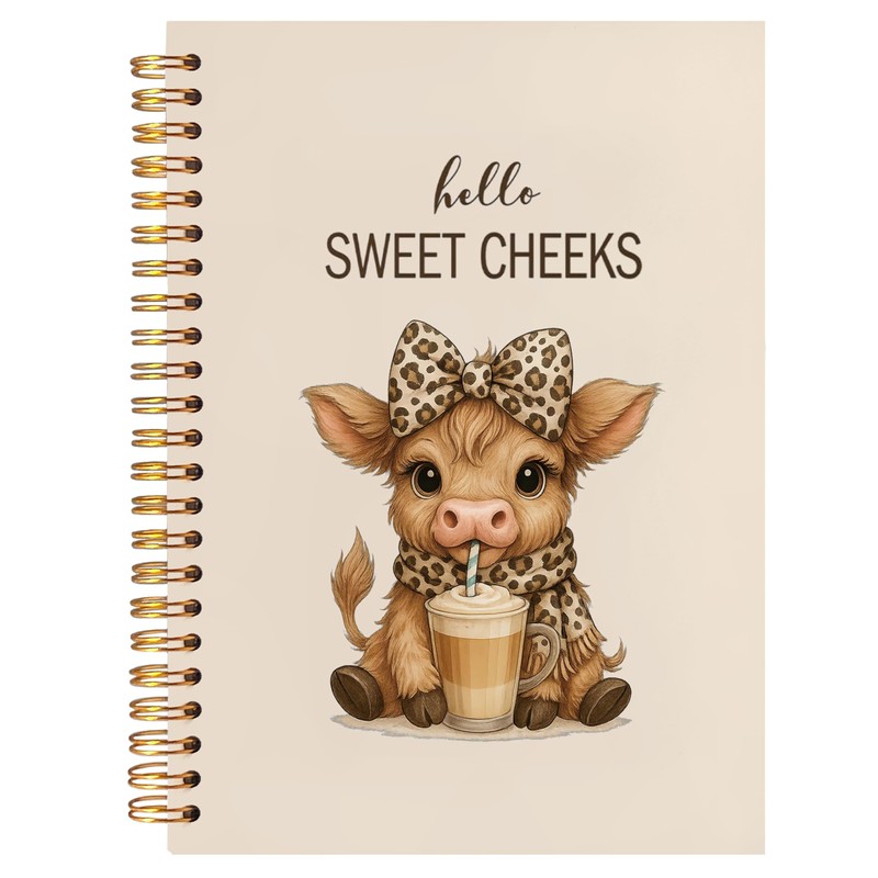 ignytiger Hello Sweet Cheeks Highland Cow Notebook, Coquette Preppy Leopard Bow Cow Journal, Highland Cows Gifts Spiral Notebook Journal for Note Taking, Cows Office Supplies, 5.5x8.3 Inch