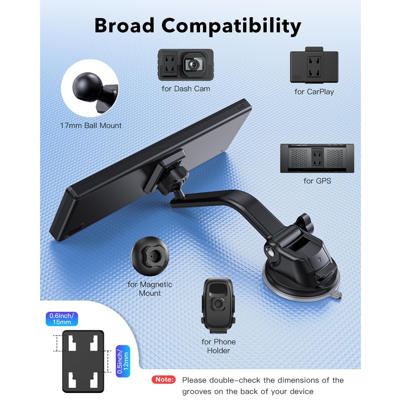 iGoevo Suction Cup CarPlay Screen Mount – Strong Hold Dashboard Mount That Won’t Fall, Low Profile Design That Doesn’t Block View, Suction Mount for 7"–10.26" CarPlay Screens