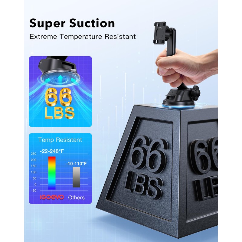The iGoevo Low Profile Suction Cup Car Mount is the ideal solution for drivers who use CarPlay screens or car monitors and want a safe, clutter-free view of the road. Designed for dashboard installation, this mount sits lower than traditional suction holders—preventing line-of-sight blockage and enhancing driver visibility. Unlike bulky windshield mounts, this holder keeps your CarPlay screen securely positioned just above the dashboard, so you don't need to raise your eyes to see the display. Whether you're using navigation, taking hands-free calls, or switching music, your screen stays within reach but never in your way. The suction cup base offers dual mounting capability—on the dashboard or windshield—and delivers exceptional stability thanks to the industrial-grade suction power and anti-slip pad. Even over potholes, speed bumps, or during sudden stops, your screen stays firmly in place. Its 360° rotating ball joint allows for seamless angle adjustments. Tilt and turn the screen to your liking—landscape for navigation, portrait for calls—all with a simple one-hand operation. The mount is also reusable and easy to maintain. If the suction pad collects dust, just rinse it under water, let it air dry, and it will regain its full grip strength—no need for replacements. Constructed with UV- and heat-resistant materials, the iGoevo mount is built to handle extreme summer heat. It stays strong and intact even after long hours of sun exposure, ensuring reliability and long-term use. If you're looking for a CarPlay screen mount that prioritizes safety, visibility, and durability, the iGoevo low-profile suction mount is your go-to choice. Drive smarter, safer, and with total peace of mind.