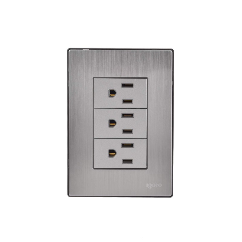 iGoto INOX1004 Con 3 contactos sencillos de 1 módulo, Acero Inoxidable, Color Plata