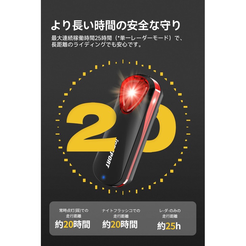 - (Ultra Visible Distance for a Safe Ride Experience) The SR30 high-performance tail light boasts an amazing brightness that can be seen from a distance of up to 1.6 km. In addition, the 220° wide angle illumination allows you to see clearly from all directions, so you can enjoy your ride safely in bad weather or in the dark. This makes your safety even more secure, so you don't have to worry about night riding or long distance rides