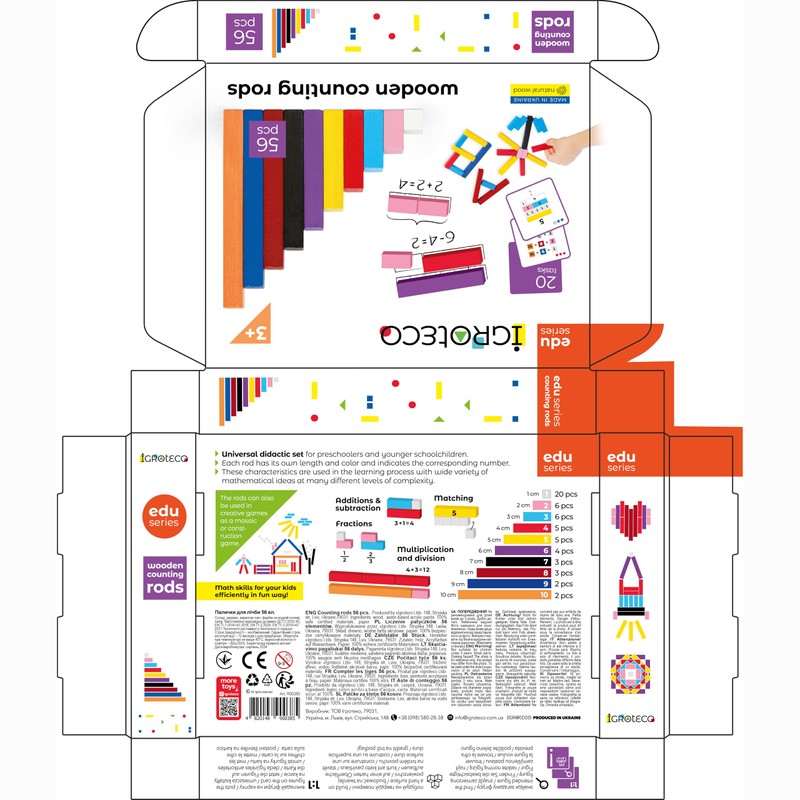 The sticks are intended for playing and learning with children aged 3 to 8 years at home and in educational institutions.