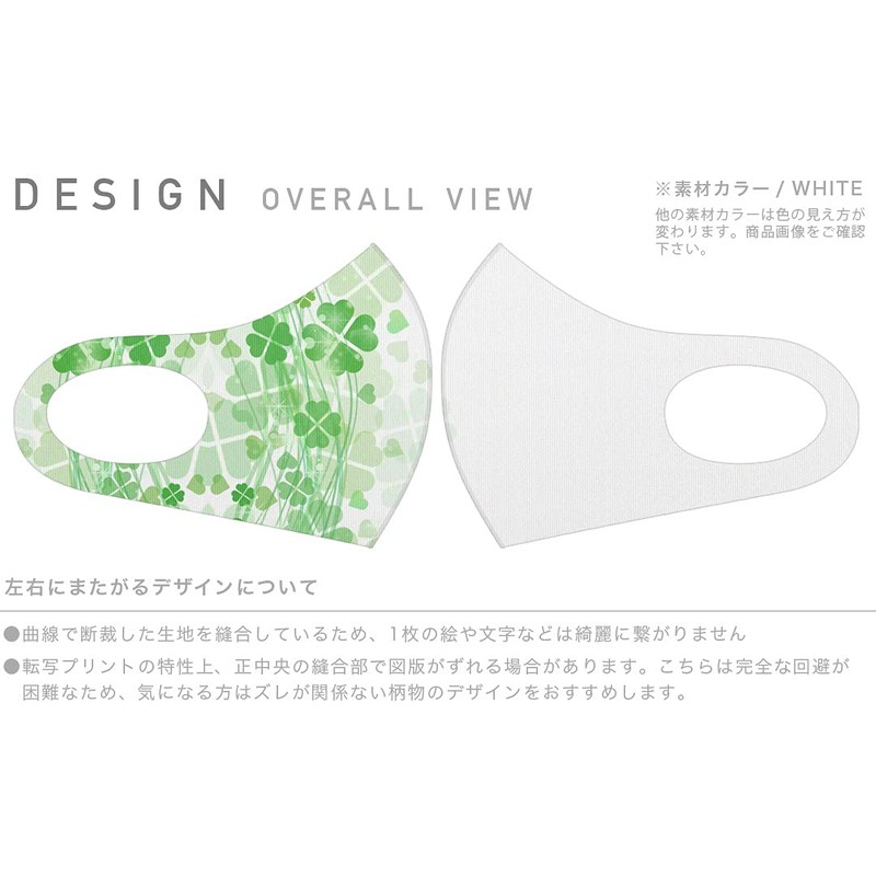 igsticker 005490 Design Mask, Set of 2, Polyester, Washable, Cloth Mask, Unisex, Flowers, Four Leaves, Clover