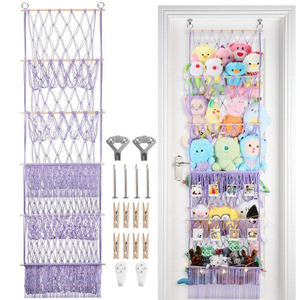- 【Unique Gifting Choice】: The over the door stuffed animal storage is a perfect gift for your daughter, son, girls, boys, which will help your child develop the habit of organizing and storing. It's a perfect birthday gift, nursery gift, baby gift, baby shower gift, New Mon gift, holiday gift, Easter gift, Thanksgiving gift, Christmas gift, girls', boys, nursery room decor, boho room decor. Enhance your nursery plush toy storage and organization!