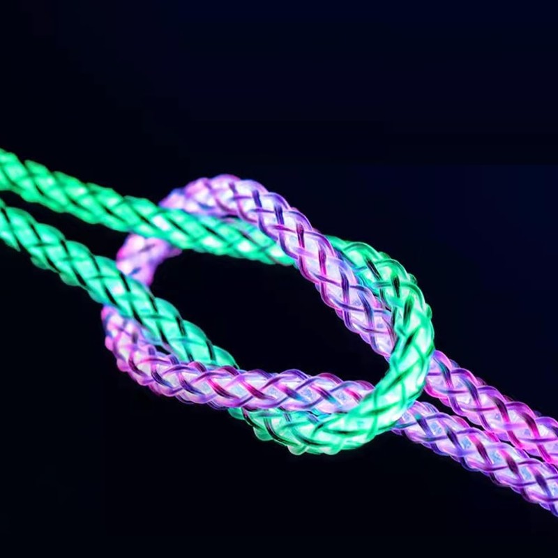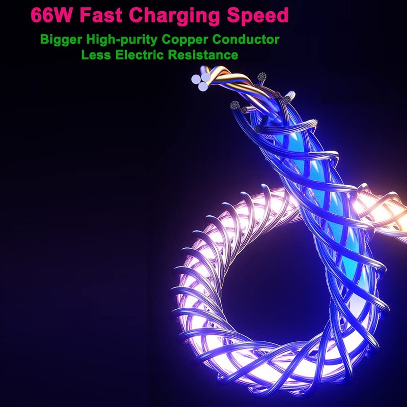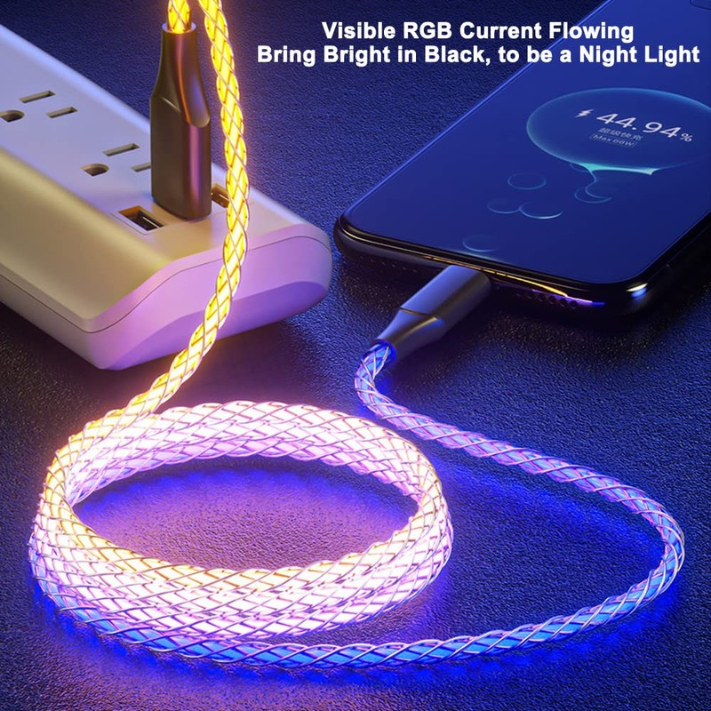 - 1. Visible Nice RGB Current Flowing: Charging cable shows beautiful RGB flowing LED light, bring the most comfortable visual experience to you. RGB Streaming light stays on will shine your room or car, this cable can be used as a night light.