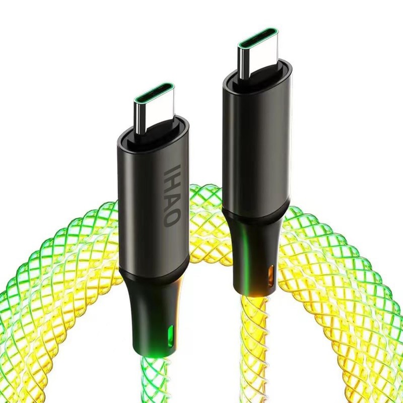 IHAO USB C to C Charger Cable PD Fast Charge and High Speed Sync Visible LED Current Flowing Compatible with All USBC Device-39Inches RGB