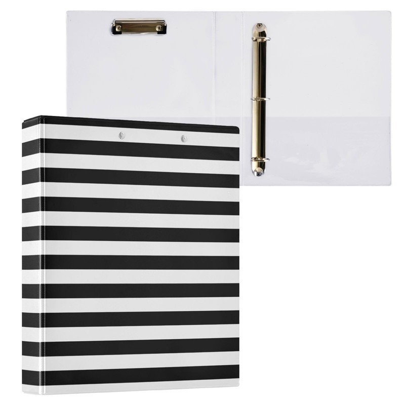 IHCVHQX 3 Ring Binder 1.5 Inch Binders Black and White Striped Binder Organizer Fashion View Binder with 2 Pockets for Home Office Supplies