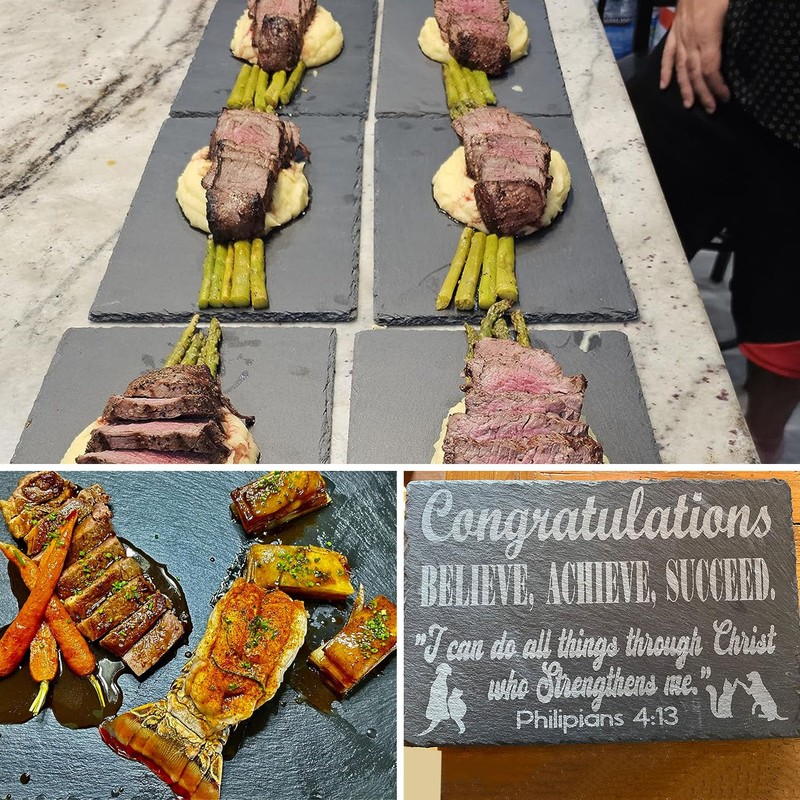 - 【Quality Natural Slate】:Slate Cheese Boards Made from 100% natural slate, ensuring durability and a stylish appearance. Ideal for serving trays, sushi plates, and gourmet boards.