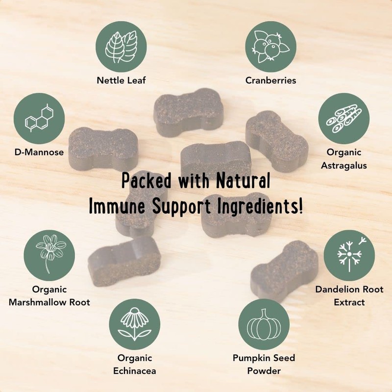 - Immunity Boost Powerful key ingredients that support the immune system to help your pup’s body fight off harmful bacteria, keeping them happy, healthy and out of harm’s way.