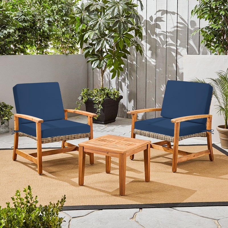 Iheqard Outdoor Deep Seat Cushion Set of 2, 24 x 24 Inch Waterproof and Fade Resistant Patio Furniture Cushion Backrest with Ties for Patio Garden Yard and Balcony (Blue-2Pcs, 24x24Inch)