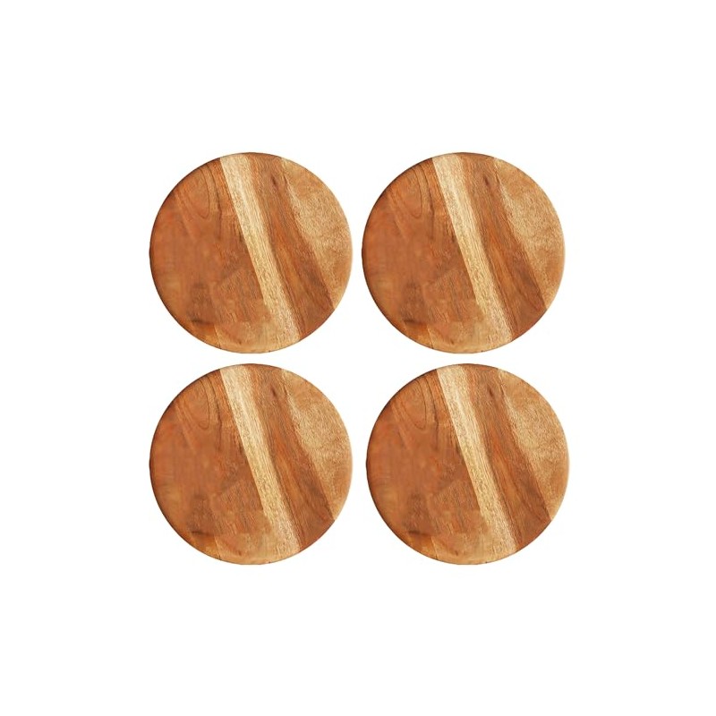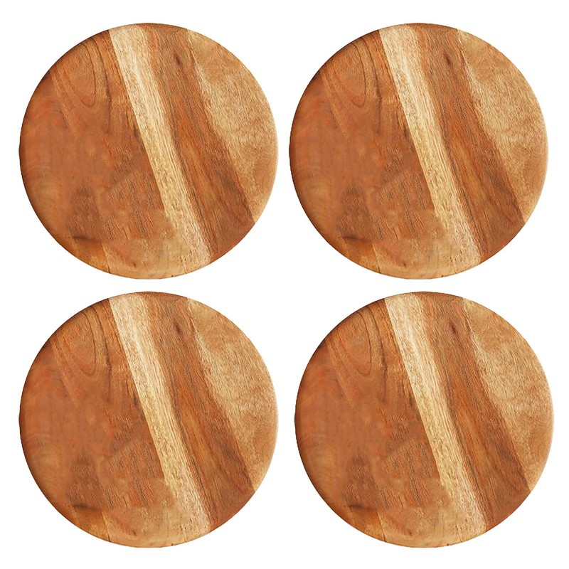 - Sold as a set of four; Crafted from durable and beautifully grained acacia wood, these chargers are perfect for protecting your table while adding a rustic touch