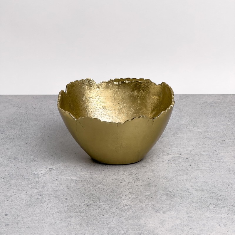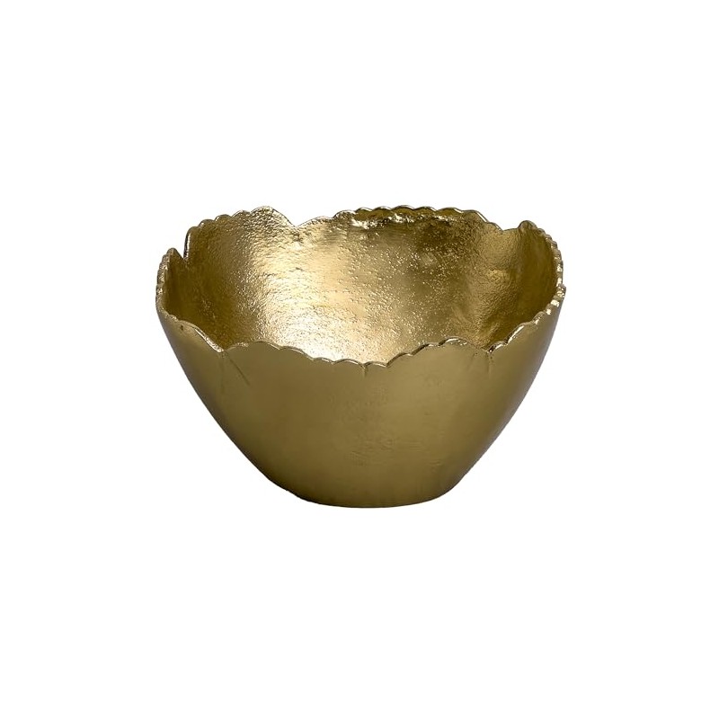 IHI EST. 1986 Free-Form Irregular Scalloped Edge - 7.5 x 4 Inch Textured Gold Aluminum Round Decorative Serving Bowl