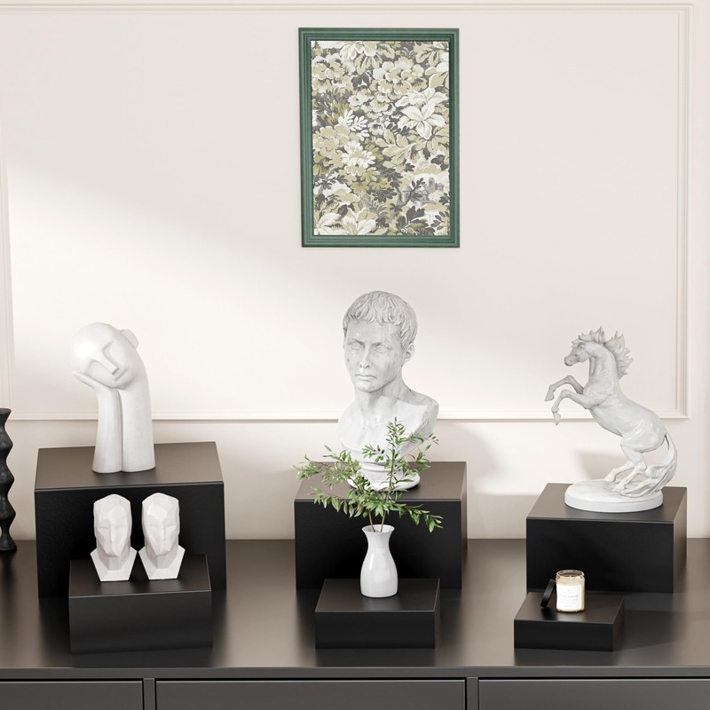 - Simple and beautiful:The riser is designed with black iron sheet, the color is classic and versatile, which can be easily integrated into various occasions and styles, and the matte surface can enhance the overall display of a sense of seniority, suitable for high-end events or commercial displays.
