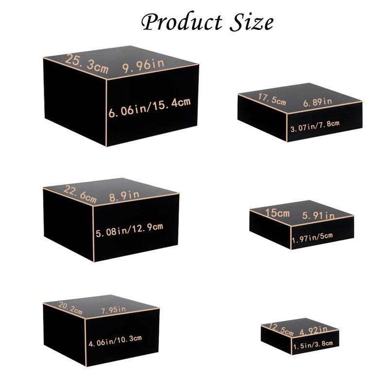 ihomecooker Metal Buffet Risers,6PCS Food Risers for Buffet Table 5in to 10in Display Stand for Catering Dessert Black Cube Boxes Nesting Risers with Hollow Bottoms