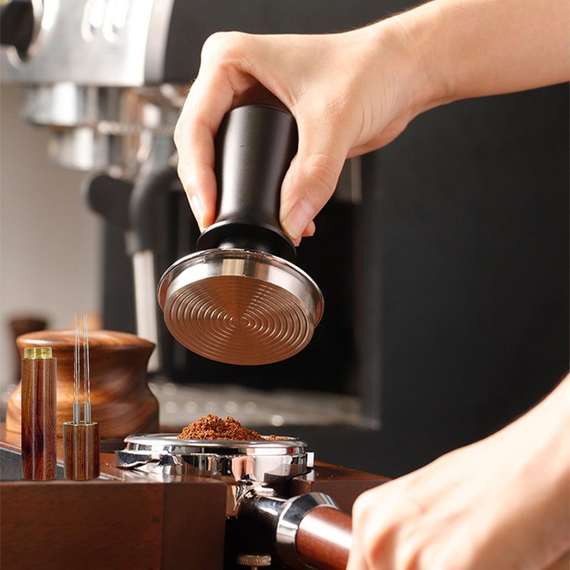 - Good value match: Espresso tamper set contains tamper 51 mm, a distributor tool with 6 fine needles, a black silicone pad, a cleaning brush, a cleaning cloth and a coffee shovel. More complete than most sets on the market, it can meet your various needs in coffee preparation without having to buy additional accessories.