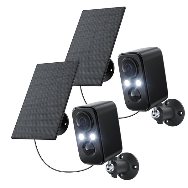 IHOXTX Security Cameras Wireless Outdoor, Flood Light Solar Cameras for Home Security, Home Camera with Color Night Vision, PIR Human Detection, 2-Way Talk, IP66 Waterproof (2Packs-Black)